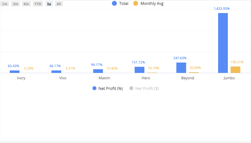 The entire purpose of CopyTrading is to make automated trading easy and profitable. That said, it is important that you not only choose good traders to copy, but also that you continually monitor their progress to ensure they are remaining profitable. As market conditions change the results of individual traders can also change. At times it can make good sense to drop the traders you are currently copying and choose new traders who may be improving their performance. Just remember that nothing lasts forever and the winning traders this month could be the duds next month.
